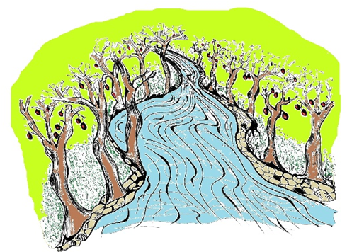 Vers 1-5: En hij liet mij een zuivere rivier zien, van het water des levens, helder als kristal, die uit de troon van God en van het Lam kwam. In het midden van haar straat en aan de ene en de andere zijde van de rivier bevond zich de Boom des levens, die twaalf vruchten voortbrengt. Van maand tot maand geeft Hij Zijn vrucht. En de bladeren van de boom zijn tot genezing van de heidenvolken.